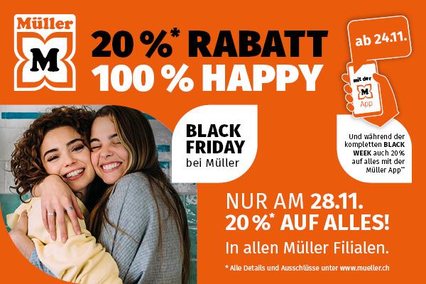 Black Friday bei Müller – verpasse nicht die Chance auf 20% Rabatt und 100% Happy Shopping!