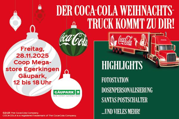Die festliche Coca-Cola Truck Tour macht halt im GĂ€upark Egerkingen!